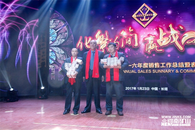 公司黨委書記崔培軍發(fā)表重要講話,他首先向蒞臨現(xiàn)場的各位領(lǐng)導(dǎo)及廣大業(yè)務(wù)精英們表示衷心的感謝和新春的祝愿,并指出公司能夠取得今日的成績,皆依賴于各級政府的大力支持、廣大業(yè)務(wù)精英的奔波拼搏和全體員工的團(tuán)結(jié)奮戰(zhàn)。他說,自己也是跑業(yè)務(wù)出身,深知跑業(yè)務(wù)的艱辛,在外受盡白眼,因?yàn)楣驹谏a(chǎn)進(jìn)度、核價報價、售后服務(wù)、手續(xù)辦理、拉車裝車等各個方面存在的不足,他鄭重向大家表示歉意。也正因?yàn)槿绱耍幽系V山將不遺余力地推行簡單化管理,把復(fù)雜的問題簡單化,把簡單的問題更簡單,努力為廣大業(yè)務(wù)經(jīng)理在各個方面提供便利。他提出,河南礦山的企業(yè)根基是孝道,一個人的做人根本也是孝心,什么都可以等,唯獨(dú)孝不能等。業(yè)務(wù)經(jīng)理們常年奔波在外,回家的時間很少,自己將代替大家盡孝心,明年繼續(xù)帶領(lǐng)大家的父母雙親外出旅游。他總結(jié)道,人生重要的是人品,中華民族的文化精髓是“厚德載物”,一個人要贏得別人尊重,核心的品質(zhì)就是做人厚道,希望大家永遠(yuǎn)記在心間。