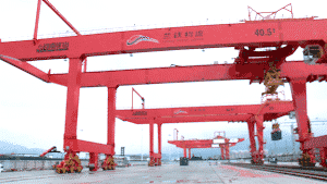 為蘭州國(guó)際港務(wù)區(qū)制造的自動(dòng)化集裝箱起重機(jī)正式投入使用